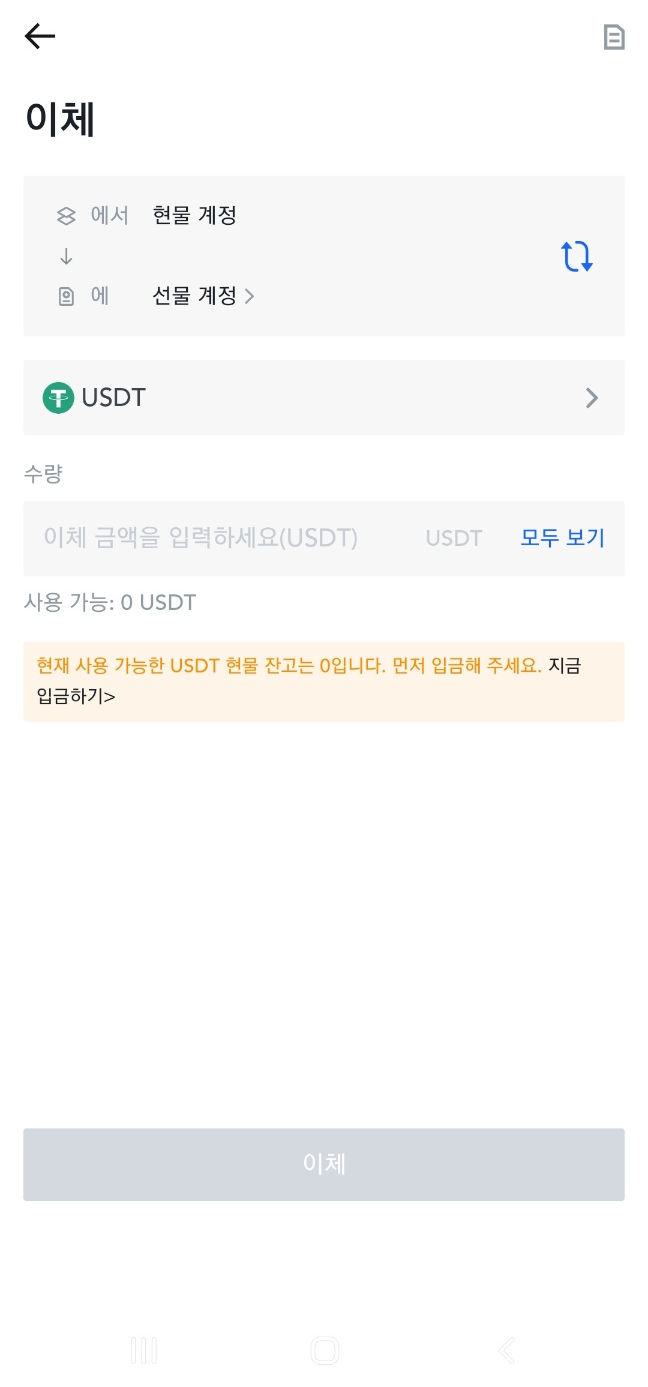 XRP를 USDT로 바꾼다는건 XRP를 팔아서 usdt로 받는것을 말합니다. 최종적으로 우리는 $500 usdt가 필요합니다. 그러니 여유롭게 $510 리플을 옮기는것을 추천드립니다. 바꾼 USDT는 선물계좌로 옮겨야합니다. 선물계좌로 옮기는 방법은 현물에서 선물로 이체하기 누르면 됩니다.